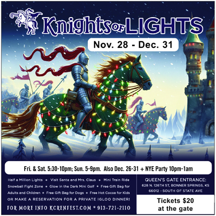 TARC’s WINTER WONDERLAND – Nov. 26-Dec. 31, Sun-Thu; 6-9pm; Fri-Sat 6-10. Lake Shawnee, 3435 SE East Edge Rd. View dazzling holiday light displays, featuring one million lights, while winding through a 2-mile scenic drive. Advanced Tickets are available: TARC, 2701 SW Randolph. 785.506-8720. Winterwonderlandtopeka.com. Closed to public Dec. 1, 8 & 15